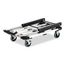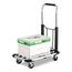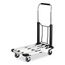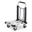 Lightweight aluminum frame. Folds flat for compact storage. Features telescoping handle, retractable wheels and fold-up toeplate. Solid rubber tires.